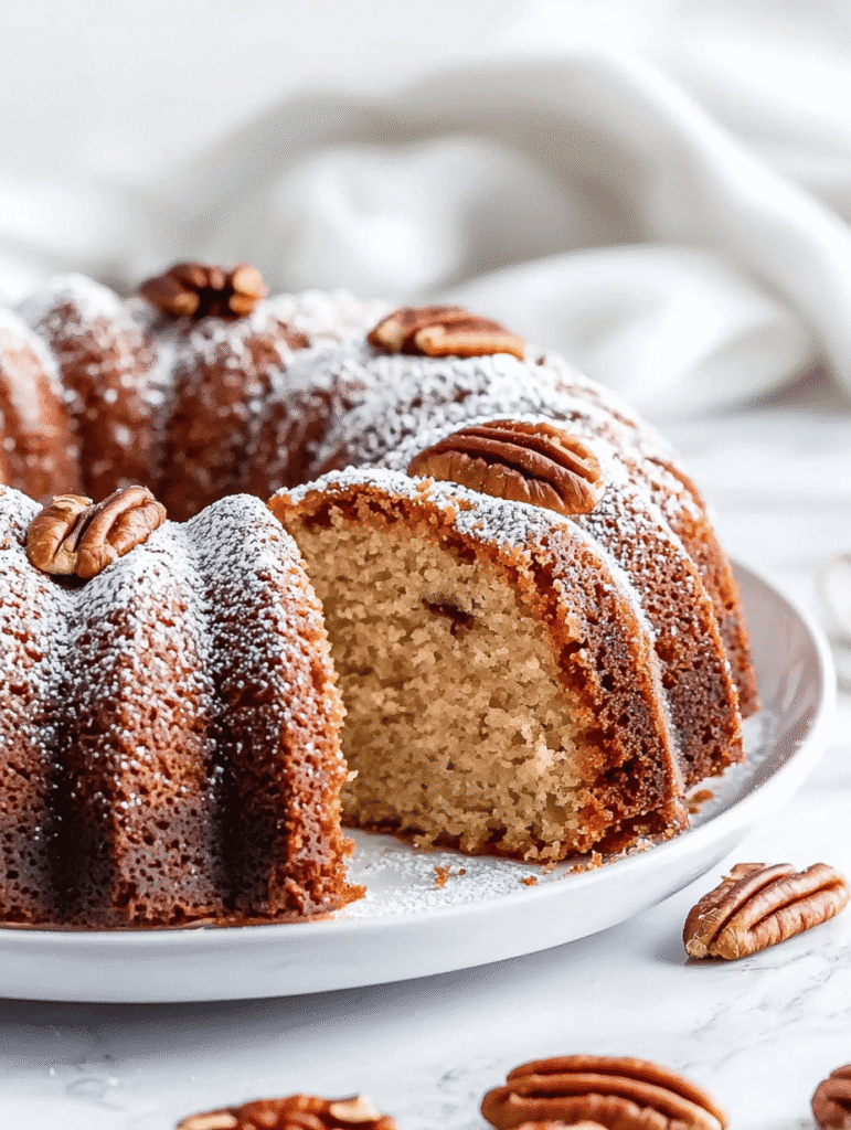 This cake smells like toasted pecans and butter colliding in the oven, with a faint sweetness that’s oddly intoxicating. It’s dense but somehow melts on your tongue, with that little crunch of caramelized nut topping. Perfect for a moment when you want your dessert to feel a little special, but also effortless.
