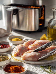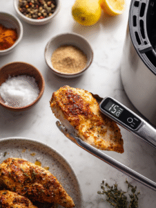 • Air fryer: Cooks the chicken evenly and quickly, creating a crispy outside.