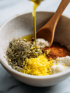 • Herbs & spices (paprika, garlic powder, thyme): Layer flavor and aroma; use what’s in your spice drawer.