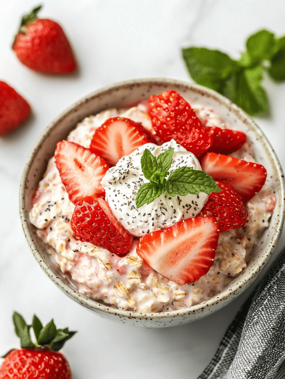 Morning Magic: Strawberry Cheesecake Overnight Oats with a Twist of Nostalgia