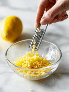 - While the cauliflower roasts, zest the lemon directly into a small bowl, capturing the bright citrus aroma.