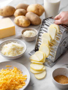 • Mandoline slicer: Ensures even, thin slices of potatoes for uniform cooking.
