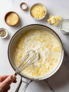 • Milk: Creamy and neutral, it helps form the luscious sauce.