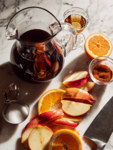 Most recipes stick to summer berries or simple citrus, but I find that the real magic of Christmas sangria comes from unexpected spice. It’s a chance to turn a basic bottle of wine into something warm, layered, and a little mischievous. This version is all about cozy nights, unexpected spice, and a little chaos in the kitchen.