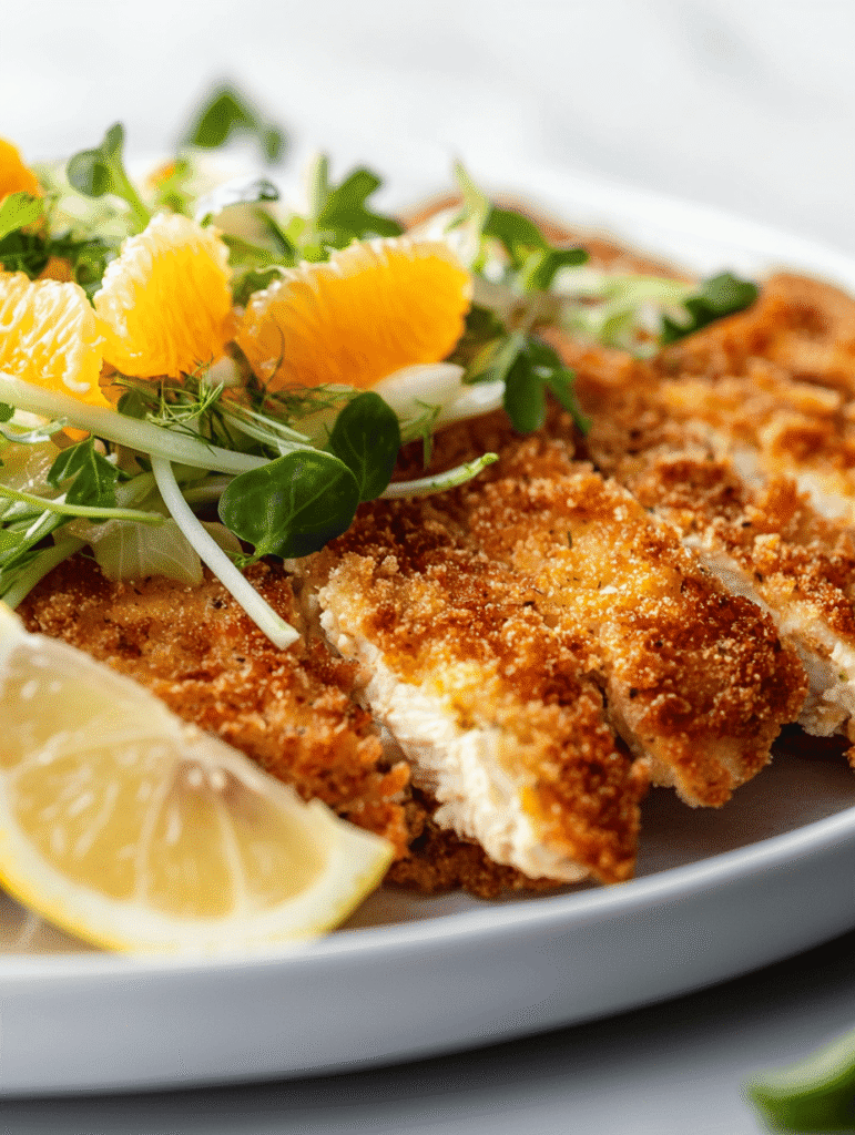 So, this dish isn’t just about eating well; it’s about rediscovering how simplicity and freshness can come together on one plate. The crunch of the chicken, the cool fennel, the zing of lemon—each bite feels like a little celebration of everything good about late spring and early summer.
