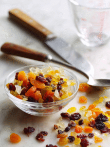 Step 3: Chop dried fruits finely; soak them in a splash of dark rum or orange juice while you prepare the batter.