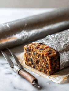 - Wrap the cooled fruitcake tightly in parchment paper, then foil, and let it sit for at least a week to develop its flavors. Enjoy slices as desired.