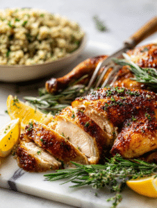 It’s simple enough to prepare without fuss but delivers a punch of flavor. The combination of herbs, lemon, and crispy skin is addictive. Plus, it adapts easily with different herbs or stuffing tweaks, making it my holiday staple.