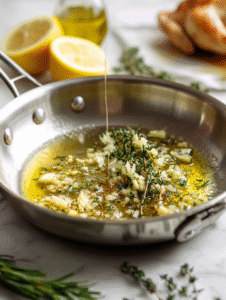 - In a small skillet, sauté the minced garlic and chopped herbs in a tablespoon of olive oil until fragrant, about 1-2 minutes.