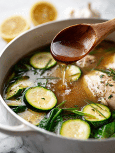 - Add sliced zucchini and chopped spinach to the broth, simmering for about 10 minutes until vegetables are tender and bright green.