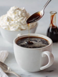 Step 3: Add 2 tablespoons of chocolate syrup to your mug, then pour the hot coffee over it. Stir until smooth and glossy.