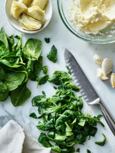 - Chef’s knife: For chopping spinach and artichokes.