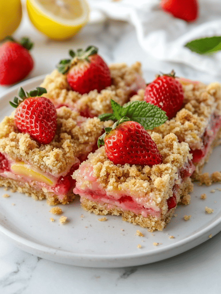 What makes these bars special isn’t just their vibrant flavors. It’s how the bright acidity of lemon balances the sweet, jammy strawberries, all nestled under a crunchy topping. Every bite offers a burst of freshness, like a quick escape from the hustle, wrapped in buttery crumbs.