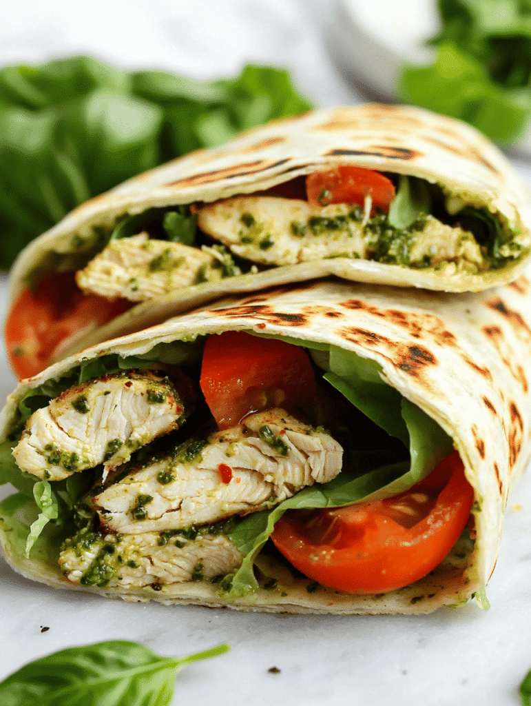 One night I roasted a chicken, and I had this jar of basil pesto sitting there, almost forgotten. I didn’t want to turn it into more pasta, so I started imagining how those flavors could meet the crunch of a wrap. Seems odd, but it’s something I do — turning what’s around into something new and satisfying.