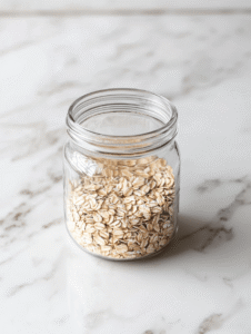 1. Pour the rolled oats into a clean jar or container with a lid.