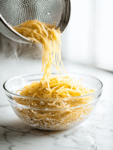 - Bring a large pot of salted water to a boil over high heat. Add the pasta and cook according to package instructions until al dente, usually about 8-10 minutes. Drain and rinse under cold water to stop the cooking process and set aside.