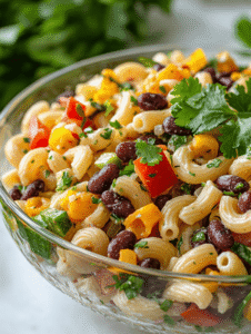 - Serve the Mexican Bean Pasta Salad chilled or at room temperature, garnished with extra cilantro if desired. Enjoy the vibrant, fresh flavors with a balance of chewy pasta, tender beans, and bright herbs.