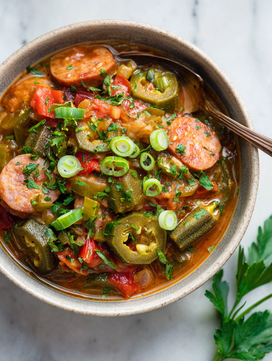 What excites me about this version is how accessible it is—no fancy ingredients, just honest, everyday vegetables and spices simmered into something soulful. It’s perfect for chilly nights when you want comfort, but also want to keep it light and plant-based. Plus, the aroma of paprika, thyme, and simmering okra just fills the house with nostalgia and warmth.