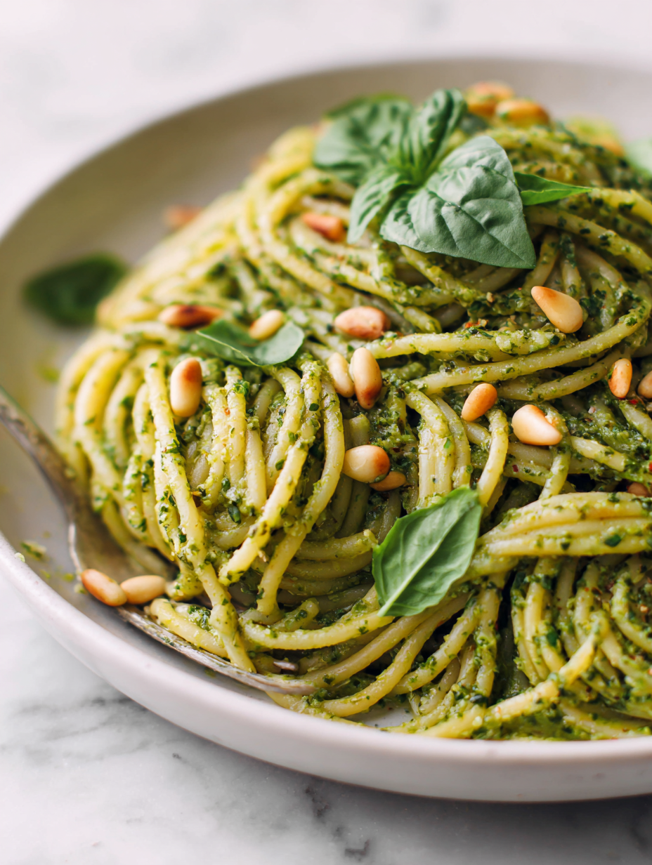 - FRESHNESS CHECK: Use the brightest green basil leaves and avoid wilted ones to keep pesto lively in color and flavor.