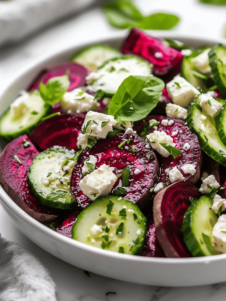 This salad isn’t just a side dish; it’s a reminder to embrace the fresh, colorful vibrancy of the season. The crunch of cucumbers paired with the tender beet slices feels like a small, satisfying rebellion against winter’s darkness.