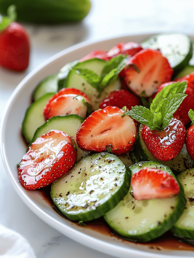 I started making this salad on a whim because I was craving something cool and crisp, but with a little twist. Instead of the usual greens or herbs, I grabbed a handful of strawberries and a lonely cucumber that I’d been meaning to use. It’s funny how simple ingredients can suddenly feel like a little rebellion against the busy week.